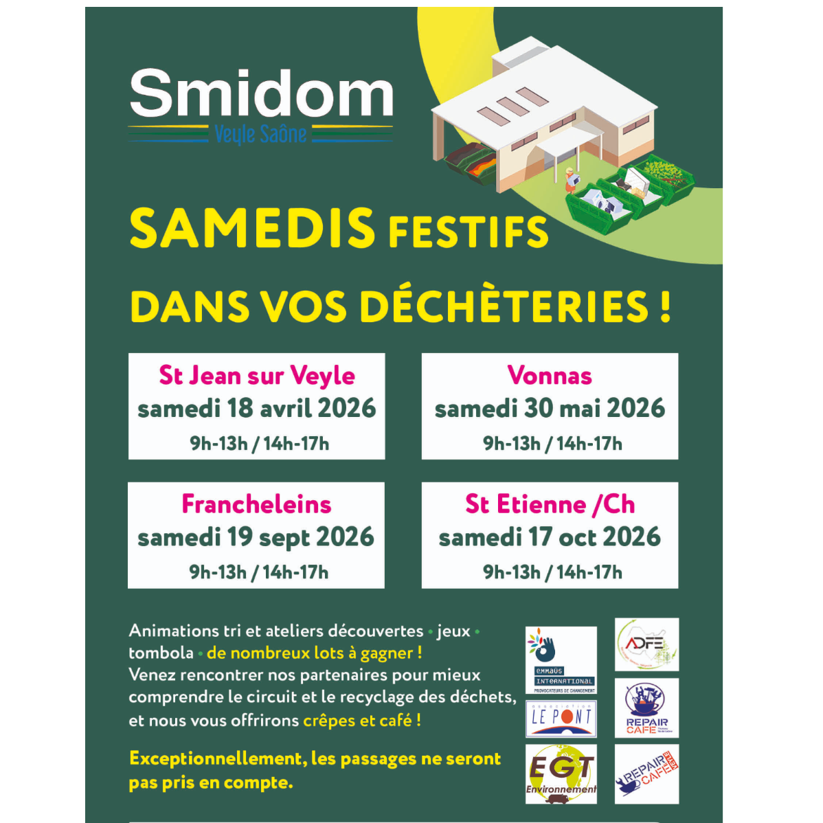 Venez rencontrer nos partenaires pour mieux comprendre le circuit et le recyclage des déchets, et nous vous offrirons crêpes et café !